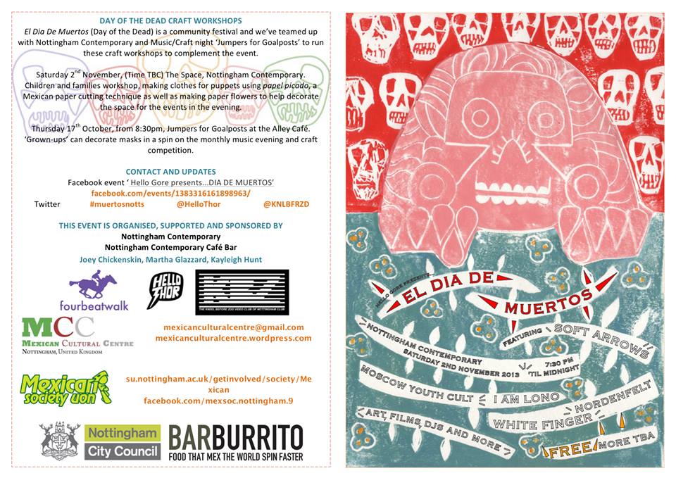 An evening of music, cinema and art celebrating the vibrant spirit of the Mexican festival, the Day of the Dead. With bands White Finger, Moscow Youth Cult, Nordenfelt, Soft Arrows and I Am Lono.
