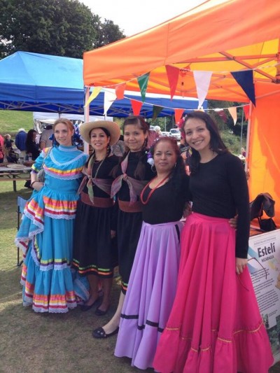 Grupo de danza Son de América. De izquierda a derecha: Eva Madera, Lore Preciado, Karla Robles, Guillermina López y E. Lizzet Cedillo. Foto cortesía.