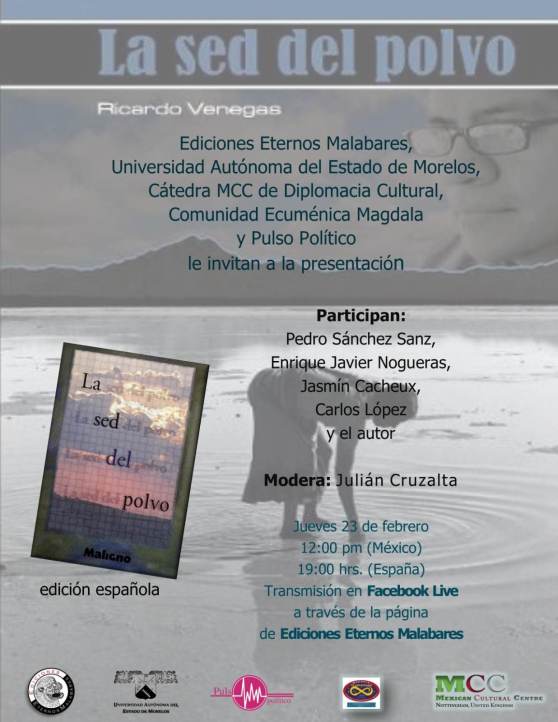 Presentación editorial «La sed del polvo» Publicado el febrero 23, 2023 por The Mexican Cultural Centre (MCC), United Kingdom. Comparte esto: Haz clic para compartir en X (Se abre en una ventana nueva) X Haz clic para compartir en Facebook (Se abre en una ventana nueva) Facebook Me gusta Cargando... Relacionado