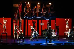 La propuesta escénica de Lombardero ya tuvo una amplia experiencia por la larga gira antes mencionada, por lo que ya se había probado, revisado y adecuado. El diseño de escenografía fue de Diego Siliano, quien junto a Rafael Mendoza hicieron el diseño de iluminación y Lucia Gutman se encargó del diseño de vestuario y maquillaje. Fue una propuesta altamente visual y dinámica que permitió comprender las diversas migraciones hacia “Mahagonny”, para esto se hizo uso de una extensión en el escenario que permitió que cantantes pudieran entrar desde el área del público. El uso de proyecciones fue extensivo y por lo general bien coordinado, para mostrar los diversos pasajes de la historia hasta el desenlace fatal de Jimmy. En este sentido, hay que destacar que las proyecciones cercanas a la zona de supertitulajes, ocasionalmente estorbaban a la lectura de éstos. El trabajo de cada personaje fue inteligente y con capacidad de darle individualidad a cada uno. Creo que este trabajo muestra la diversidad de personajes: pudo haber sido mejor trabajado en el vestuario y evitar que por momentos todos estuvieran uniformados, aunque es posible que sea parte de pertenecer a la ciudad-club “Mahagonny”. Hubo un muy buen trabajo coreográfico por parte de Ignacio González Cano. En sí la propuesta logró captar el sentido cómico, crítico de esta ópera. Además es muy interesante que a pesar de ser una ópera de 1930, con una propuesta escénica de 2017 aún sea tan actual tanto en la crítica social que pueda haber, críticas al sistema o parodias. Lo cual como obra artística para bien o para mal, nos da cuenta de su relevancia más allá de la época original y más en un momento que pasamos sobre cambios abruptos en política internacional: guerras, referéndum en Italia, cambios en sistema judicial en México, y un largo etcétera del ambiente actual, el cual no creo que hayan concebido ni Lombardero con su propuesta en 2017 o Weill-Brecht en 1930, pero que sí resalta la importancia de esta ópera.