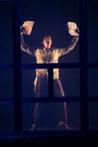 The production was directed by David Attie. It was a very good work with projections exploring different elements of Alcira’s mind, including the reptile traits. But, also it consisted of some flexible panels resembling the windows of the building, behind those panels we could see the toilets services. The use of all the material was very good, giving always a reason for each element on the stage. It was for me interesting the separation of the singing part and the acting part because it reminds me the distinction that Adorno does between audience who wish to sing, but cannot, and the singers who are able to express the desires of the audience. Considering this perspective Alcira stands for a poet thought that moves in the world of ideas and ideals. The work in the whole was very good, maybe some elements might be extra, as for my taste, but that it is a just personal choice. I highly recommend this work and I am hoping to see it again because it should have had more than three performances.