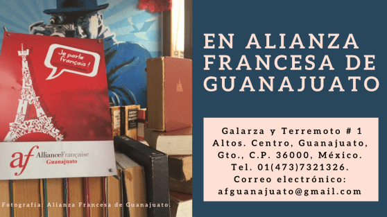La conferencia se realizará el jueves 13 de octubre a las 18:00 horas en el aula Dr. Paul Gendrop, de la Alianza Francesa de Guanajuato: Galarza y Terremoto # 1 Altos. Centro, Guanajuato, Gto., C.P. 36000. Entrada gratuita.