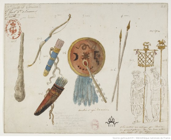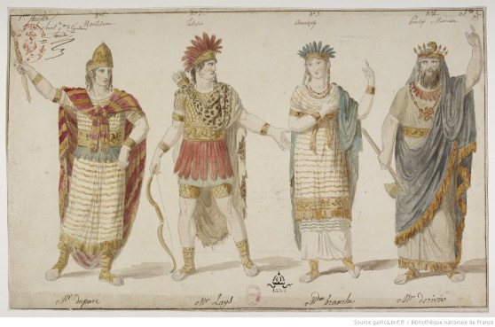 «Fernand Cortez ou la conquête du Mexique : sept pl. de costumes.» Source https://gallica.bnf.fr / Bibliothèque nationale de France.