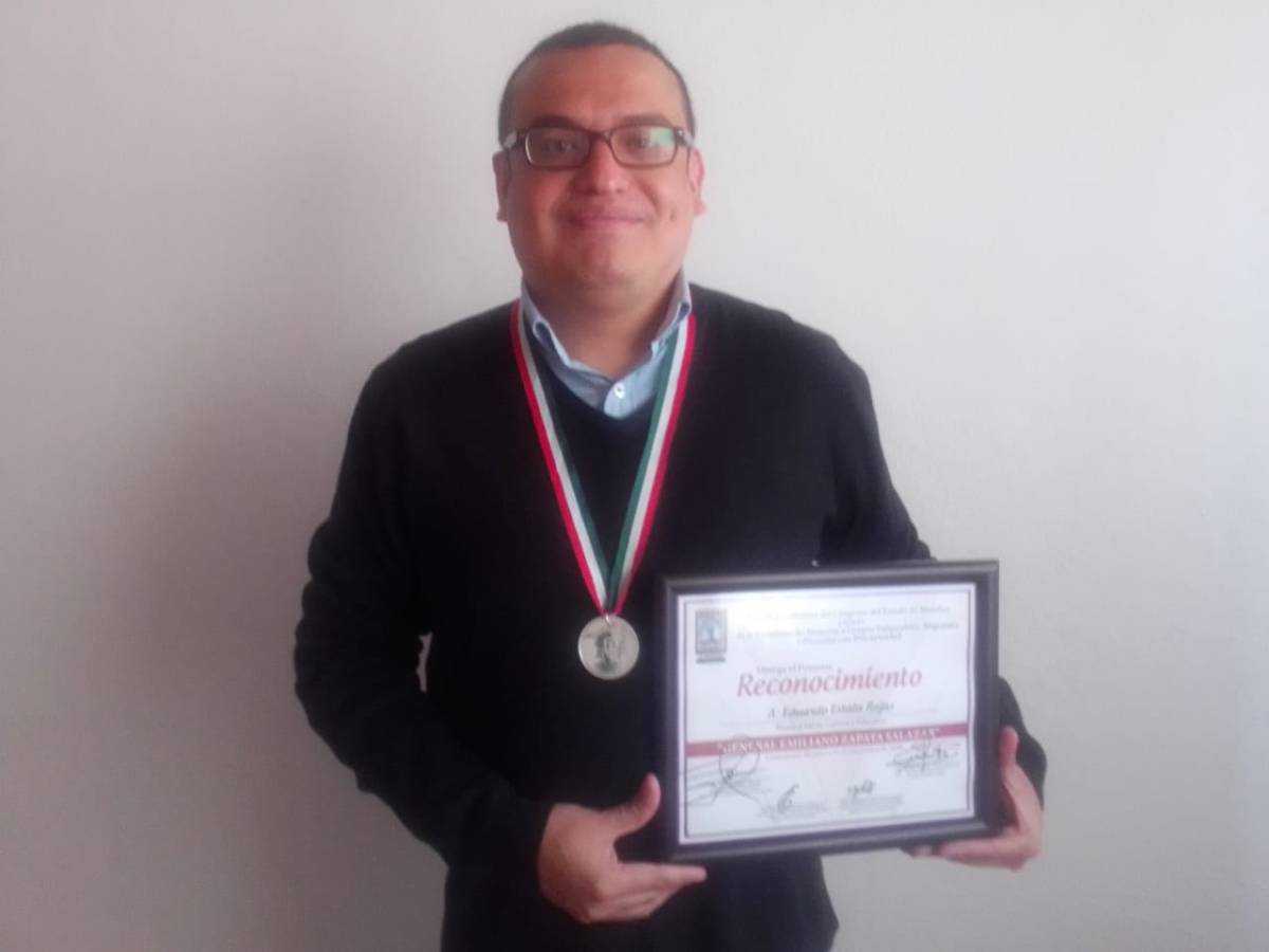En el 2020, recibió Eduardo Estala Rojas, director fundador del Mexican Cultural Centre (MCC), Reino Unido, la Presea “General Emiliano Zapata Salazar” al Mérito Migrante, en la categoría Mérito Cultural y Educativo, que otorga el Congreso del Estado de Morelos, México. Fotografía: Lidia A. García González.